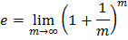 Tuto limitu jsme schopni spočítat díky objevu jedné matematické konstanty, která byla pojmenována po jednom švýcarském matematikovi. Tou konstantou je Eulerovo číslo, značí se malým e, má přibližnou hodnotu 2,71828... a nekonečně dalších číslic za desetinnou čárkou (je iracionální, podobně jako π nebo √2). Důležité ovšem je, že Eulerovo číslo lze mimo jiné vyjádřit následující limitou: